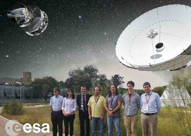 Φωτογραφία κατά την πρώτη κοινή συνάντηση εργασίας (6 Οκτωβρίου, 2015) στο κέντρο της ESA, στη Μαδρίτη, κάτω από την καλλιτεχνική αναπαράσταση του δορυφόρου PLANCK. Από αριστερά: Γιάν Τάουμπερ*, Μαρία Ιερωνυμάκη**, Στέλιος Μπολλάνος**, Ξαβιέρ Ντουπάκ*, Στράτος Γερακάκης**, Έιρικ Γκέρλοου***, Άσμουντ Όντεγκαρντ*** *ESA, **Planetek Hellas, ***XAL